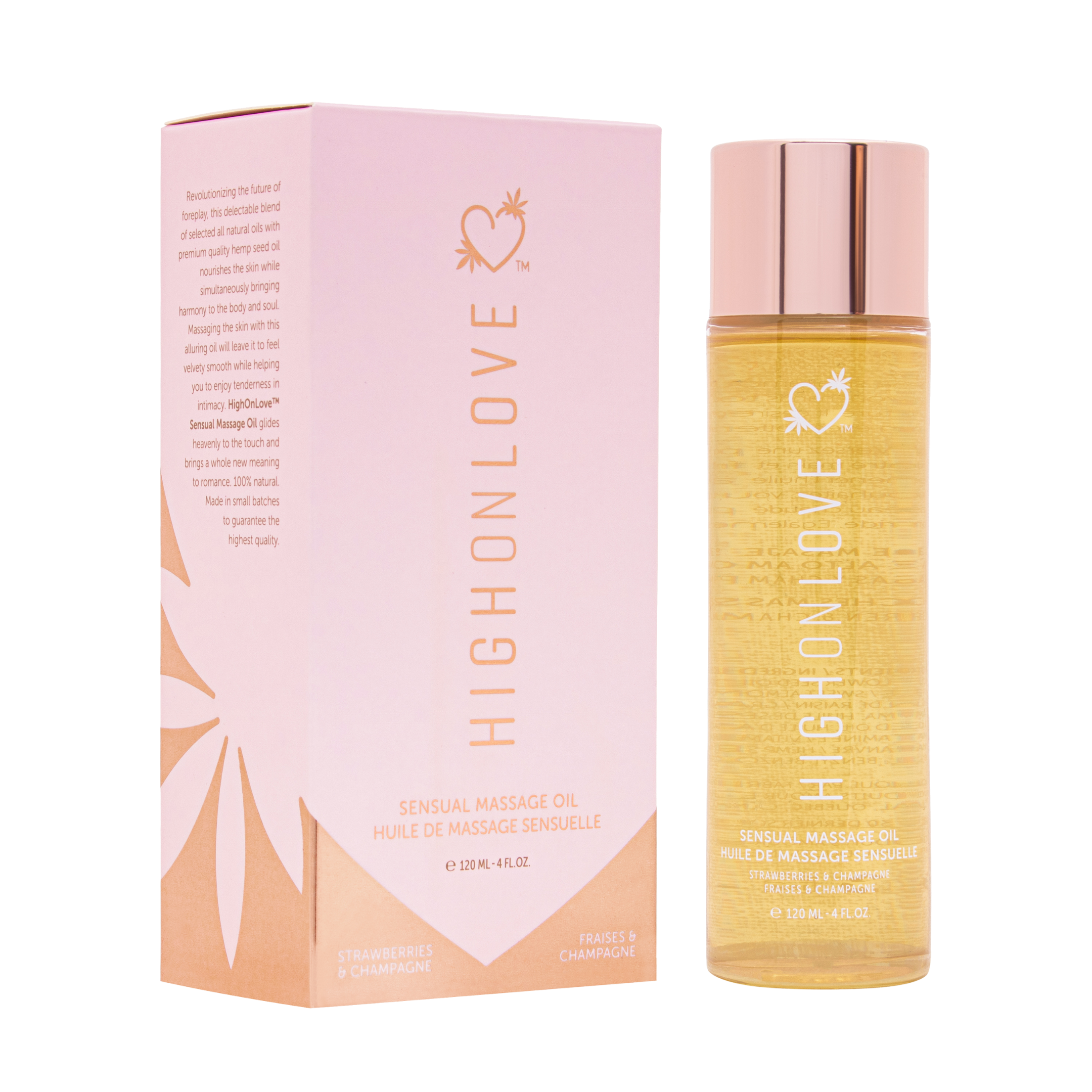 Масажне масло для харчування шкіри з натуральним ароматом полуниці та шампанського HighOnLove 120 мл