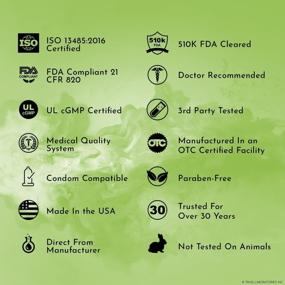 Всі формули Wet тестуються відповідно до жорстких правил системи якості медичного обладнання FDA (QSR) і діючими нормами належної виробничої практики (cGMP).