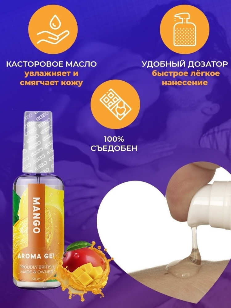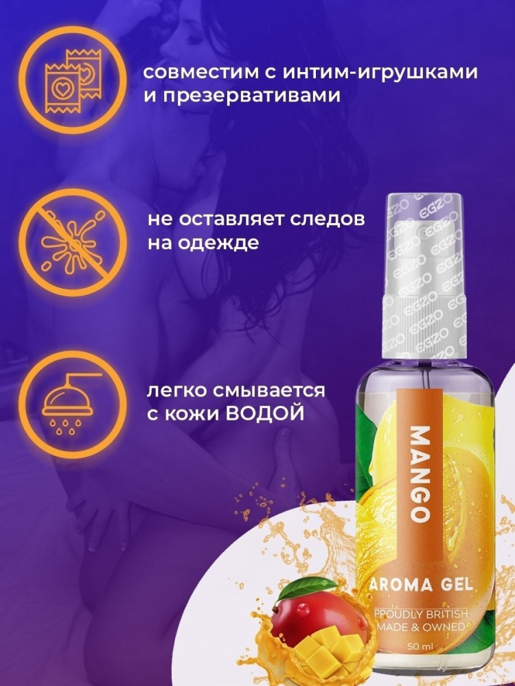 Оральна гель-змазка EGZO AROMA GEL Mango призначена для підвищення якості інтимного життя, має яскраво виражений смак і запах манго, додасть в прелюдію смак і свіжих відчуттів.