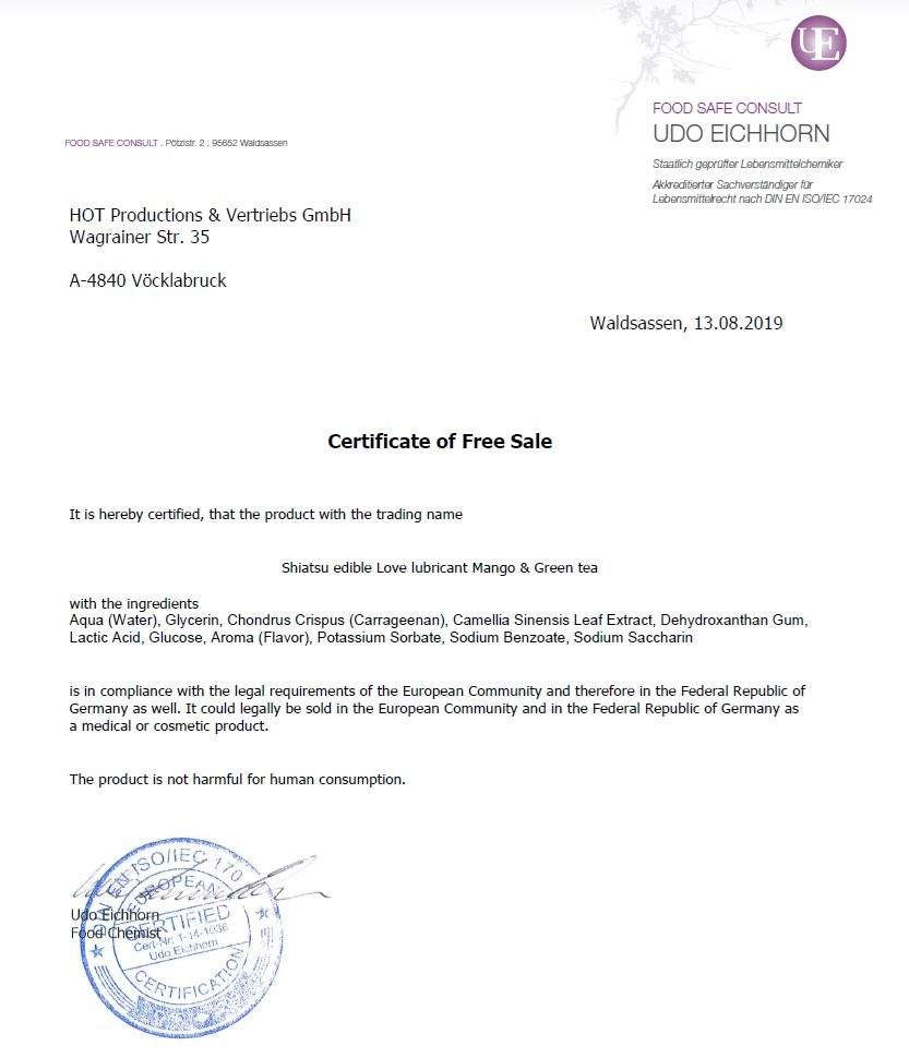 SHIATSU Love - це високоякісне мастило на водній основі перевіреного Австрійського виробника.