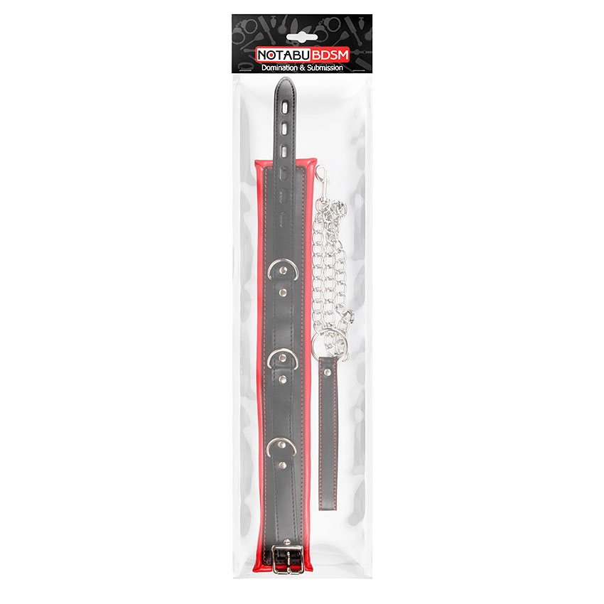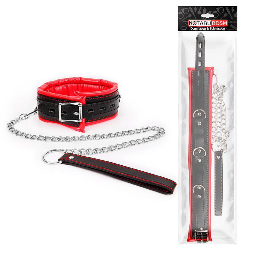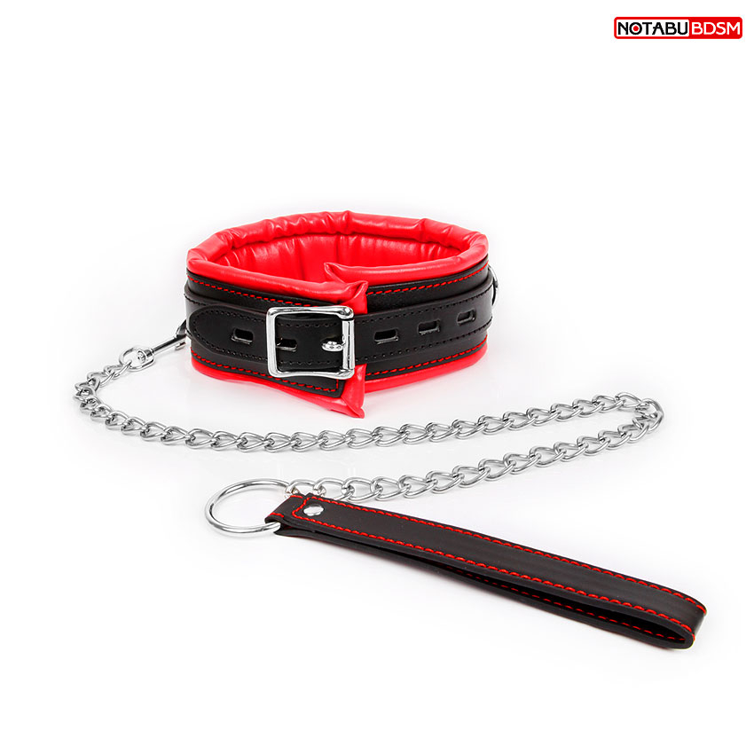 Нашийник чорно-червоний з ланцюжком-повідцем для БДСМ Notabu