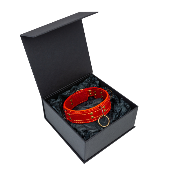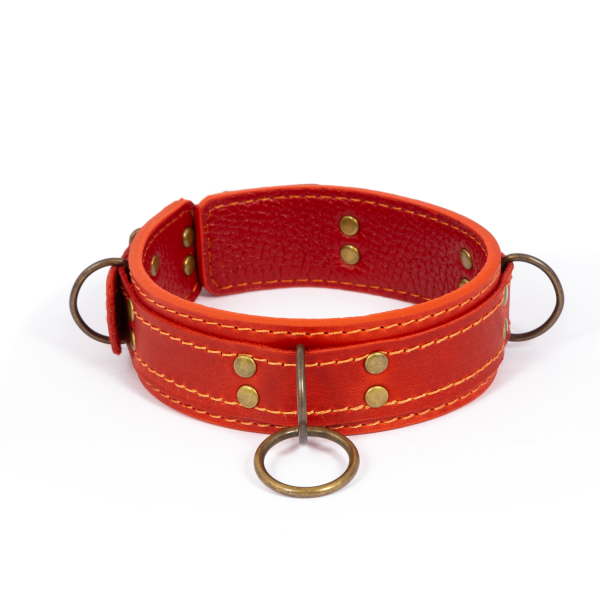 Червоний нашийник LOVECRAFT з півкільцями і кільцем на центральній частині, для кріплення повідця для нашийника, карабінів або мотузки для шибарі: