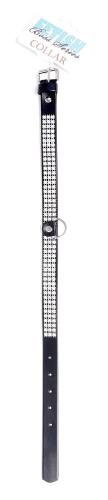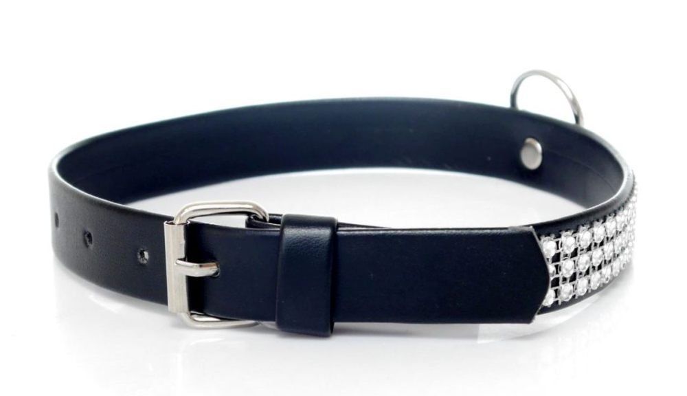 Ексклюзивний нашийник зі стразами сріблястого кольору, виконаний з міцної екологічної шкіри, ніжної на дотик, що робить його зручним у носінні.