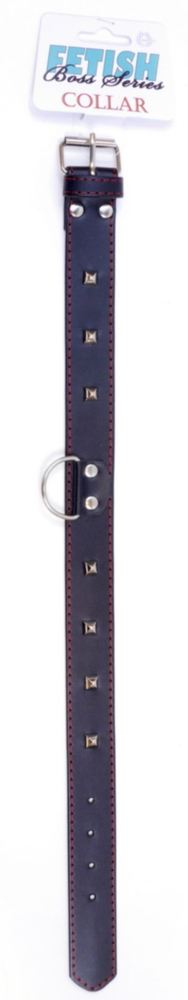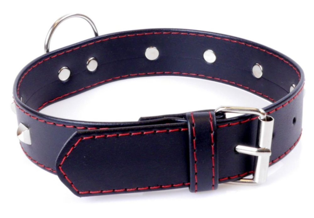 Нашийник з міцної штучної шкіри з металевими заклепками, ніжний на дотик, що робить його зручним у носінні.