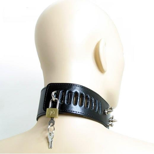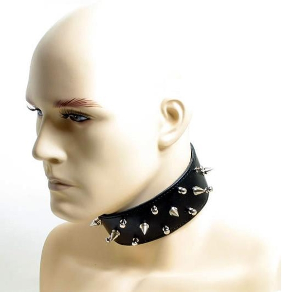 Характеристики Нашийник шкіряний чорний широкий з шипами