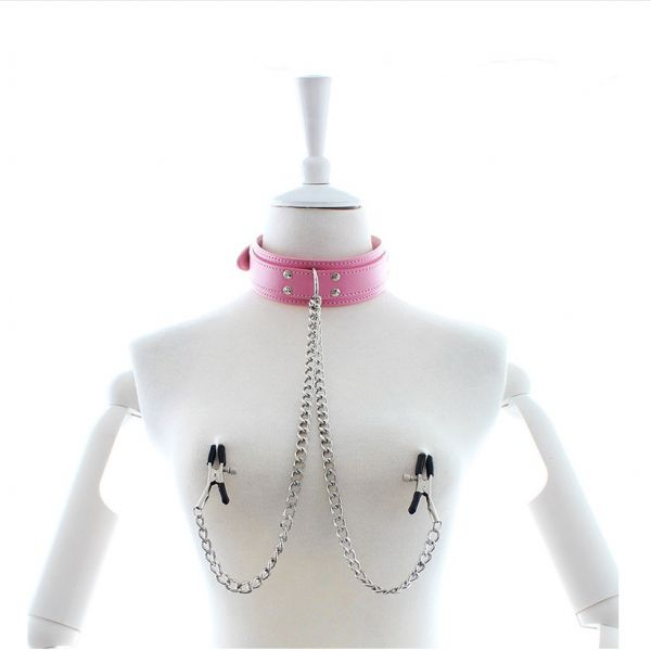 Характеристики Нашийник Шкіряний рожевий з затискачами для сосків Bdsm4u