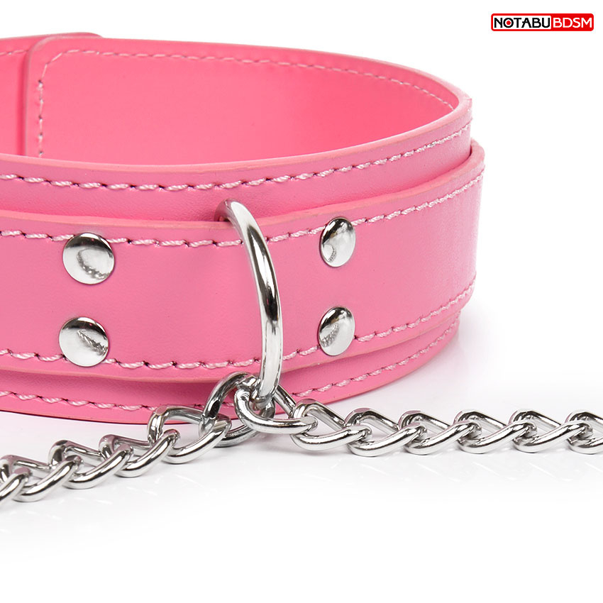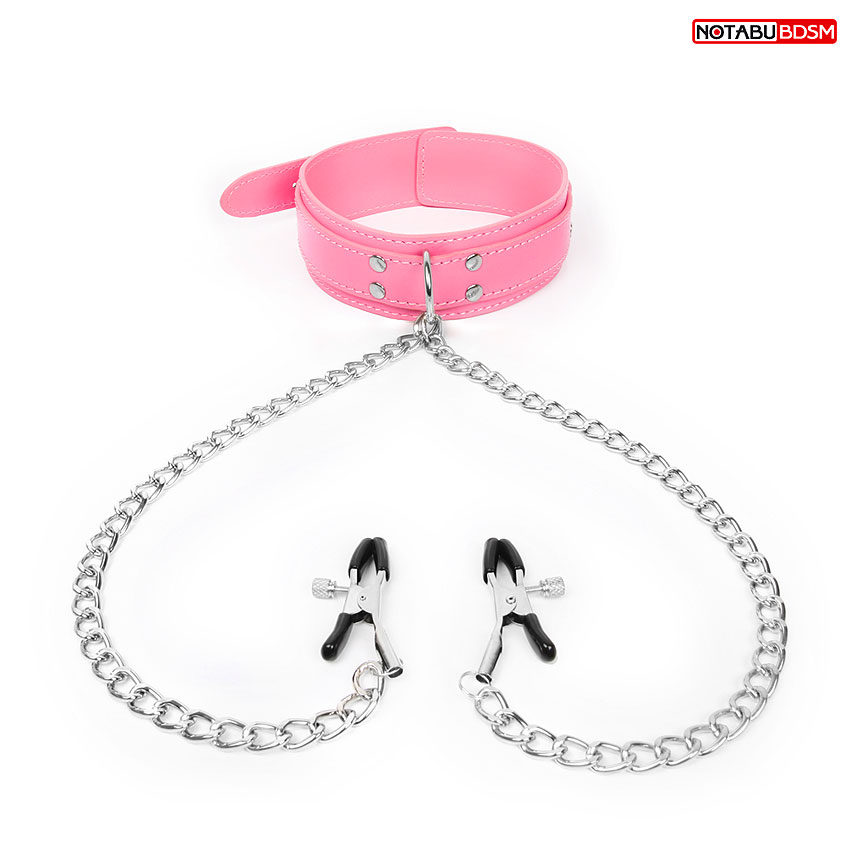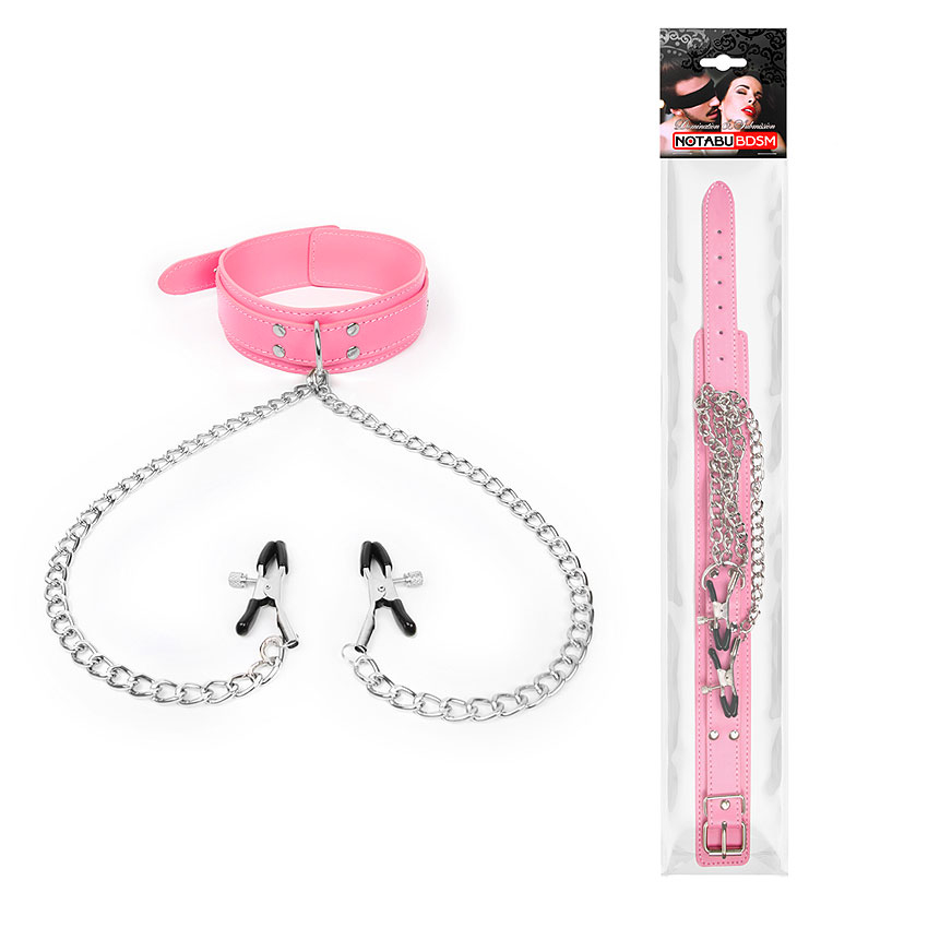 Характеристики Нашийник Шкіряний рожевий з затискачами для сосків для БДСМ-ігор Notabu