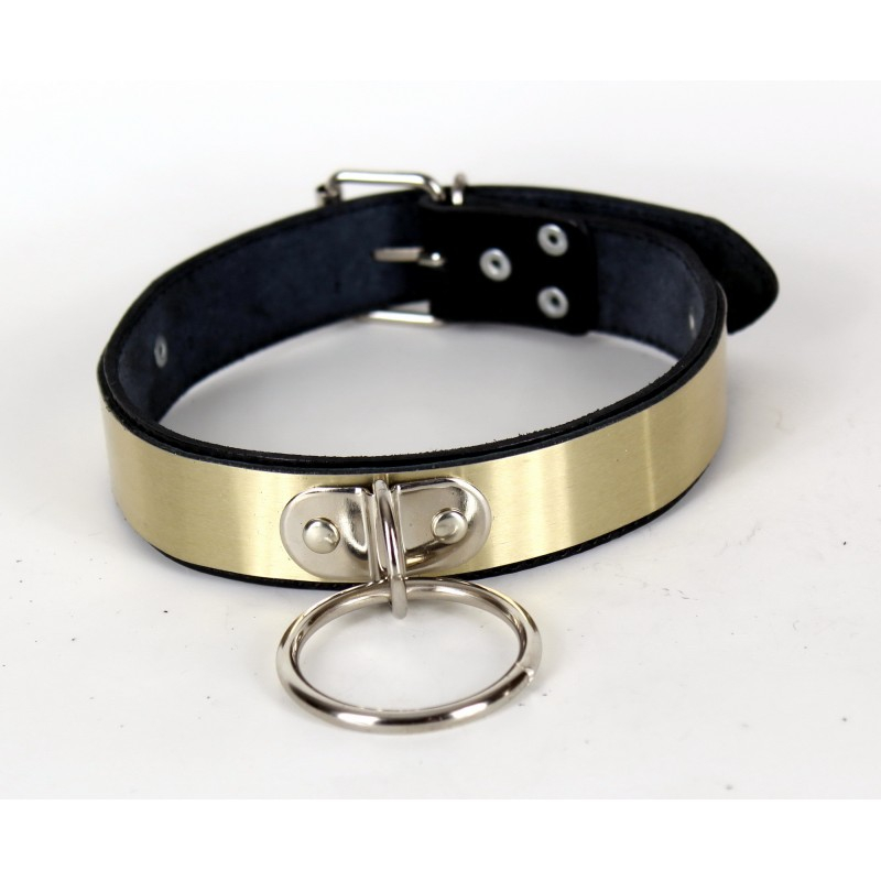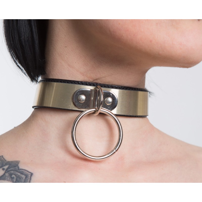 Нашийник з кільцем та вставкою з латуні БДСМ з натуральної шкіри чорного кольору Scappa
