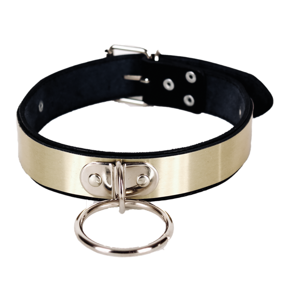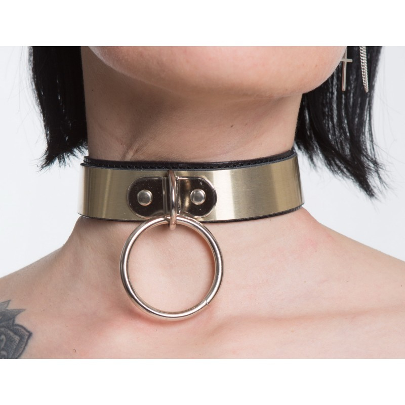 Характеристики Нашийник з кільцем та вставкою з латуні БДСМ з натуральної шкіри чорного кольору Scappa