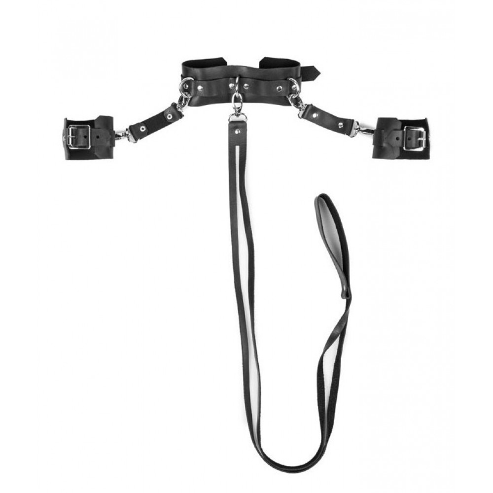 Фіксатор з нашийниками та наручниками Fet22, з натуральної шкіри, чорного кольору, One Size