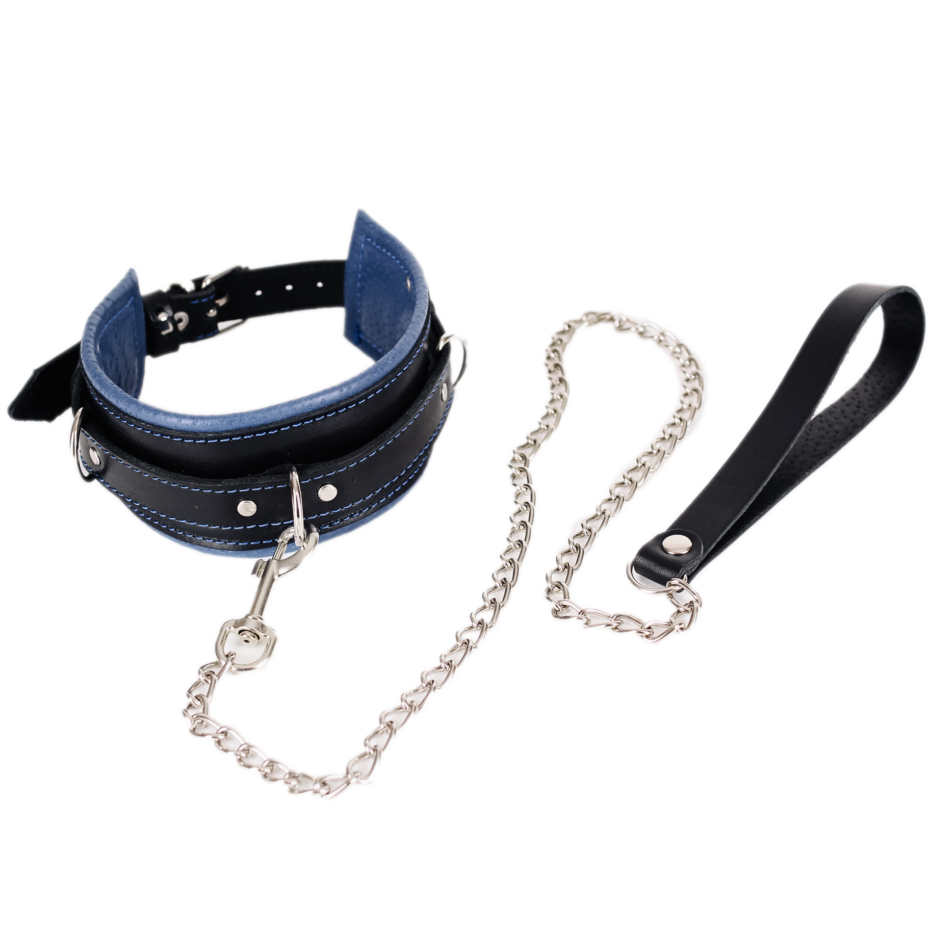 Нашийник з повідцем БДСМ із натуральної шкіри чорно синього кольору Scappa
