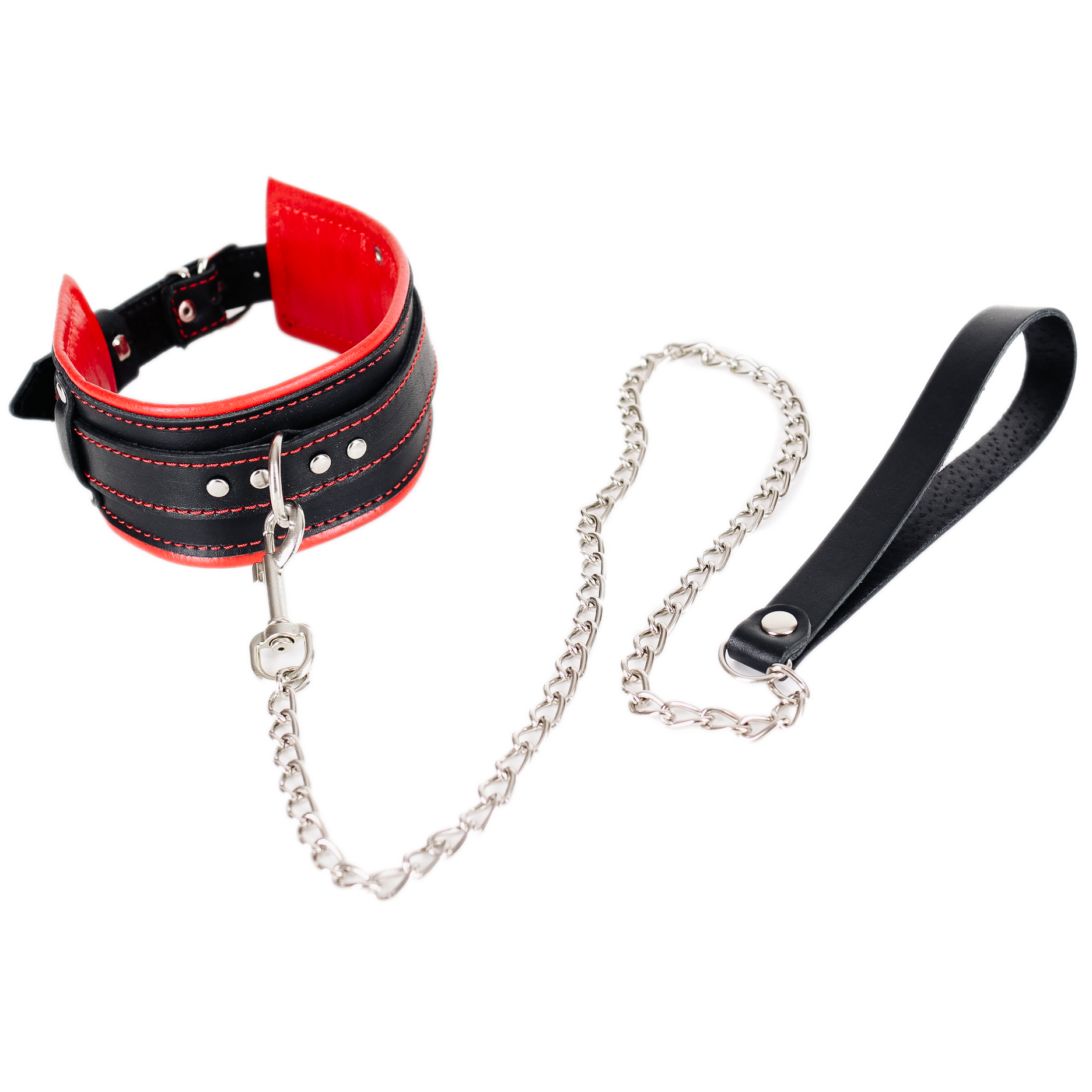 Нашийник з повідцем БДСМ з натуральної шкіри чорного кольору з червоним Scappa