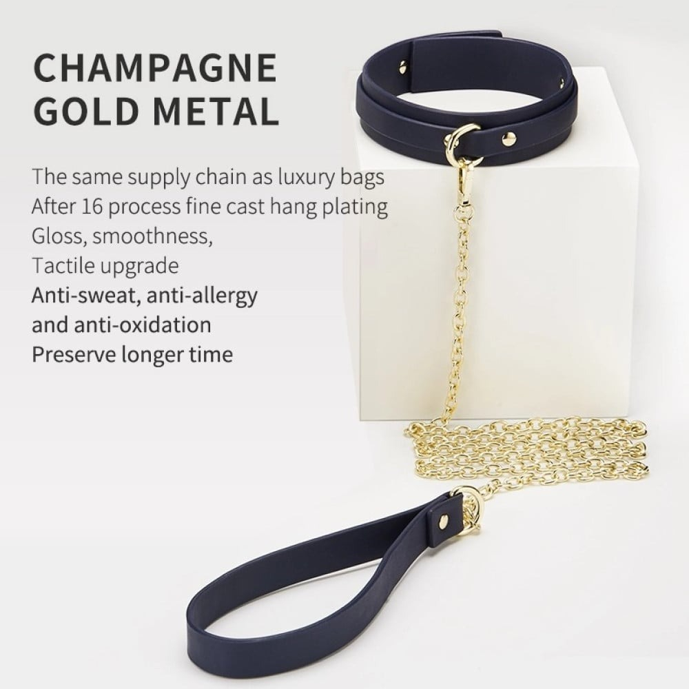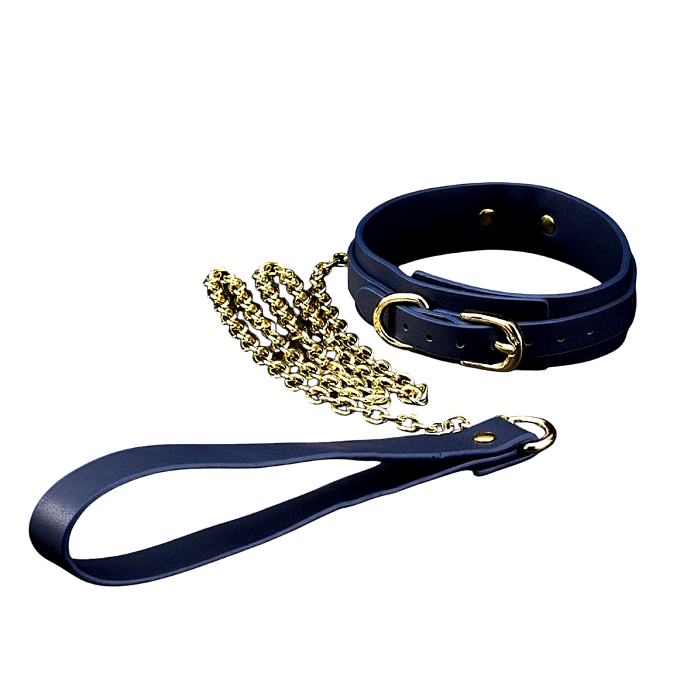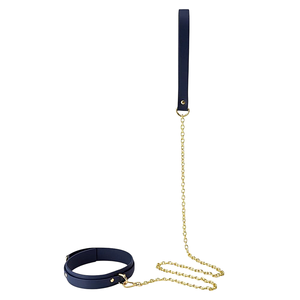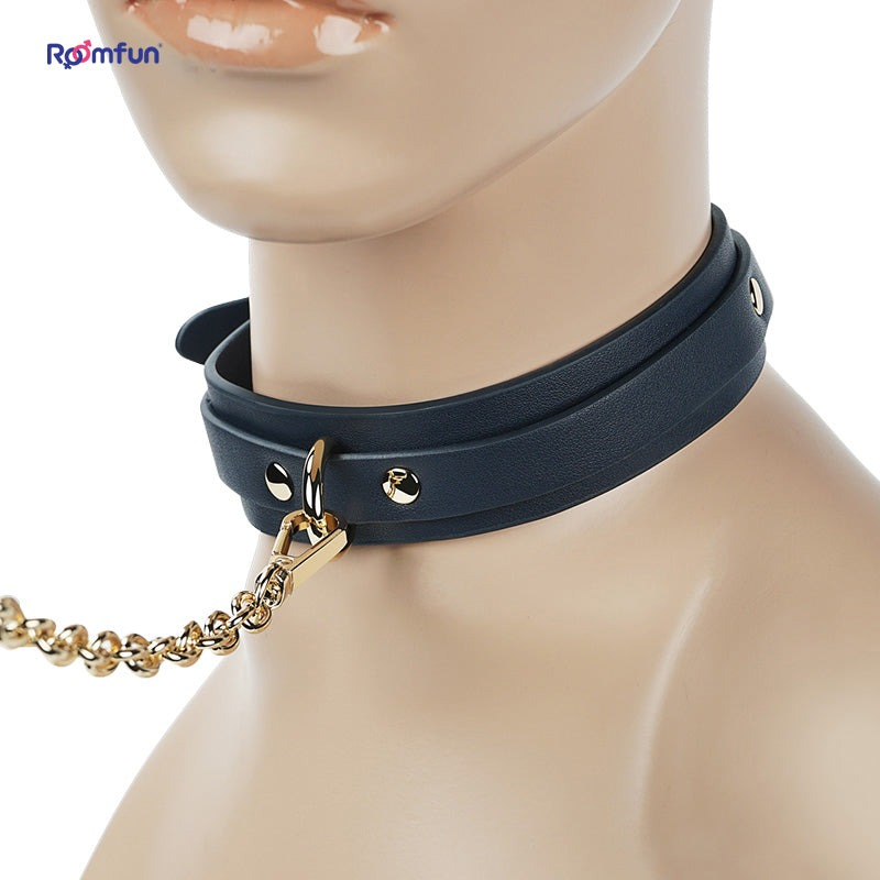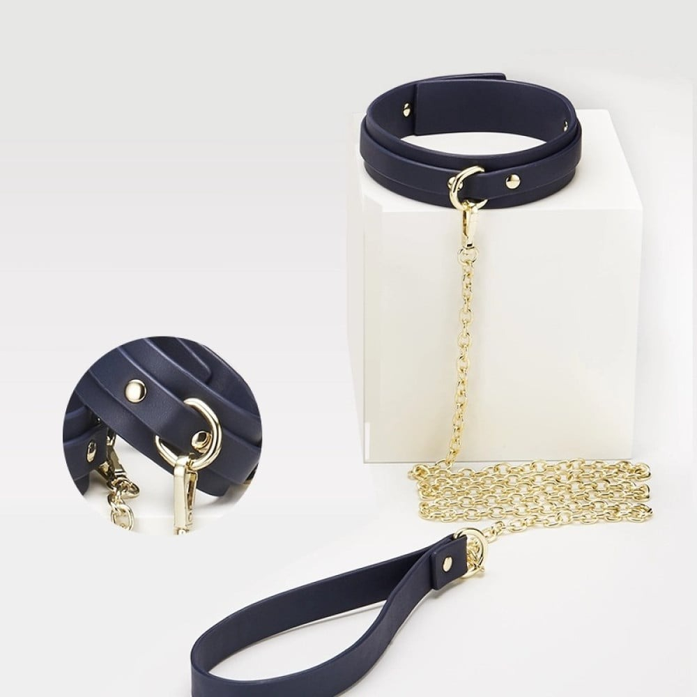 Шкіряний нашийник Roomfun з повідцем у синьому кольорі – це стильний та функціональний аксесуар для пар, які хочуть дослідити динаміку підпорядкування, контролю та чуттєвої гри. Виготовлений із міцної та якісної шкіри, цей нашийник забезпечує комфортне прилягання до шиї та надійну фіксацію для кріплення повідця. Його класичний дизайн гармонійно поєднується з іншими аксесуарами, дозволяючи створювати цілісні образи BDSM.
