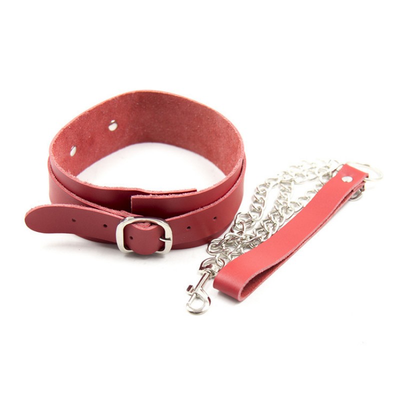 Характеристики Нашийник з повідцем ланцюжком БДСМ з натуральної шкіри червоного кольору Bdsm4u