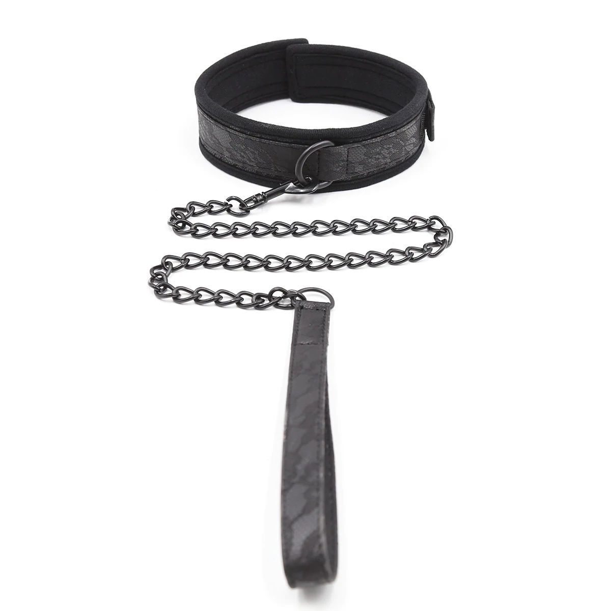 Давно хотіли спробувати гру в підпорядкування Нашийник із повідцем незамінний для цього! Тільки уявіть, як сексуальний вигляд оголеного тіла Вашого партнера, коли на ньому лише нашийник з повідцем і він готовий на все, заради свого пана... Дуже збуджує! Нашийник виконаний зі штучної шкіри чорного кольору та декорований чорним мереживом, він комфортно відчувається на шиї, не врізаючись і не травмуючи її. Фіксується нашийник за допомогою липучки, що має універсальний розмір, який Ви можете відрегулювати індивідуально. Металевий ланцюжок з петелькою, що виконують роль повідця, кріпляться карабіном до нашийника. Ви можете носити нашийник як незалежний аксесуар, зробивши образ зухвалим та зухвалим!