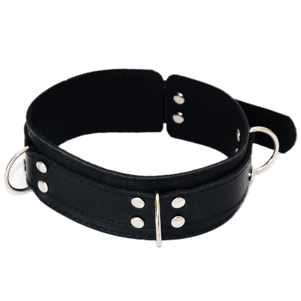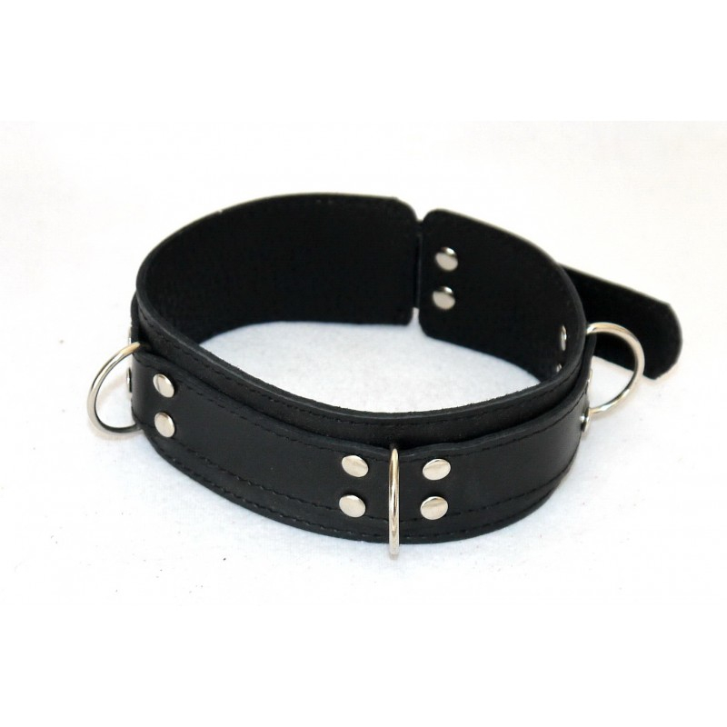 Шкіряний нашийникКолір: чорнийМатеріал: натуральна шкіраРозмір: 34 до 41 смРегулюється за допомогою пряжок.