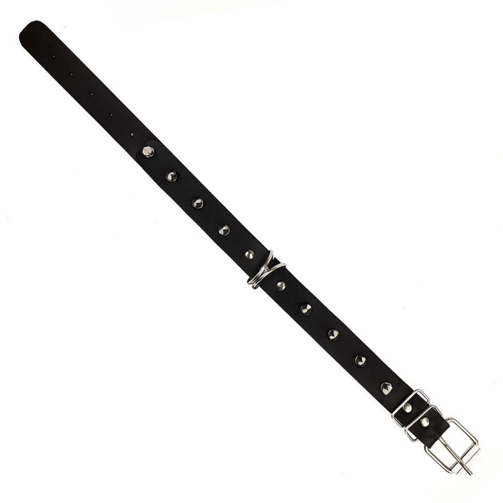 Дана модель нашийника виглядає презентабельно і строго. Нашийник виготовлений з еко шкіри і забезпечений 8 металевими шипами. Передбачено 2 півкільця під карабін для кріплення повідця.