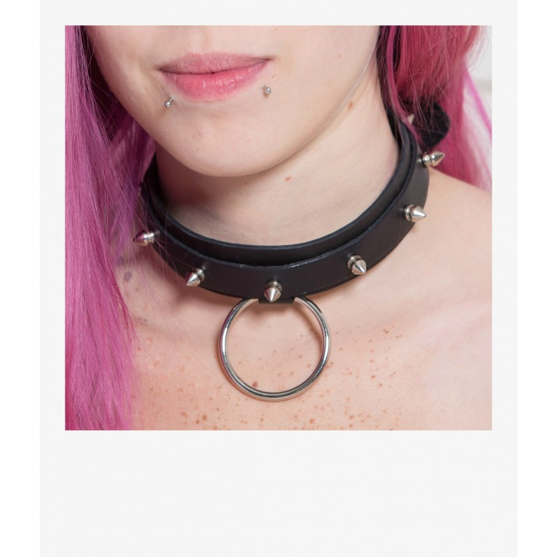 Нашийник з шипами та кільцем БДСМ з натуральної шкіри чорного кольору Scappa