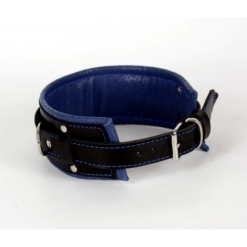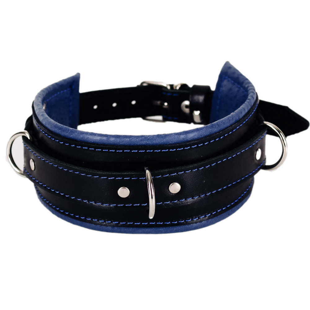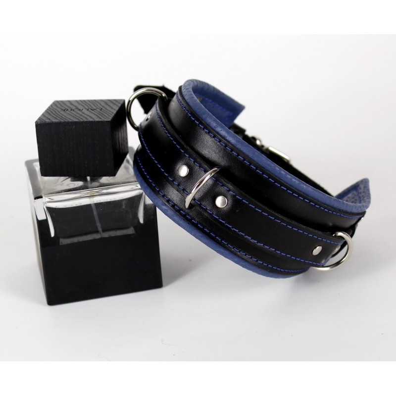 Нашийник із синіми рядками БДСМ із натуральної шкіри чорно синього кольору Scappa