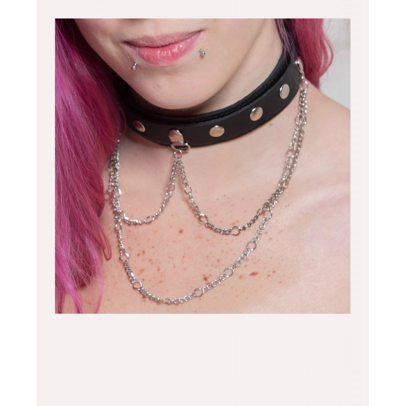 Характеристики Нашийник із заклепками та ланцюжком БДСМ з натуральної шкіри чорного кольору Scappa