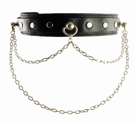 Нашийник із заклепками та ланцюжком БДСМ з натуральної шкіри чорного кольору Scappa