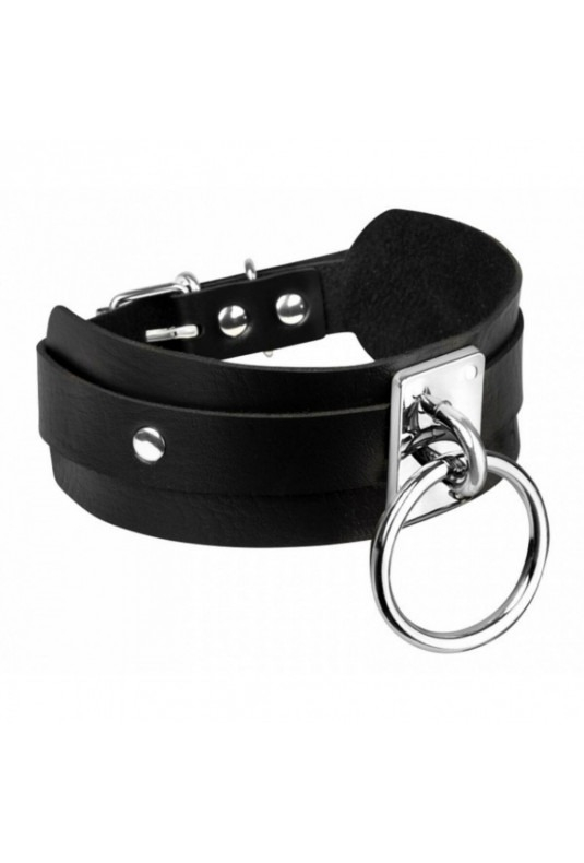 Нашийник широкий чорний Kinky Diva Collar Me із сріблястим кільцем