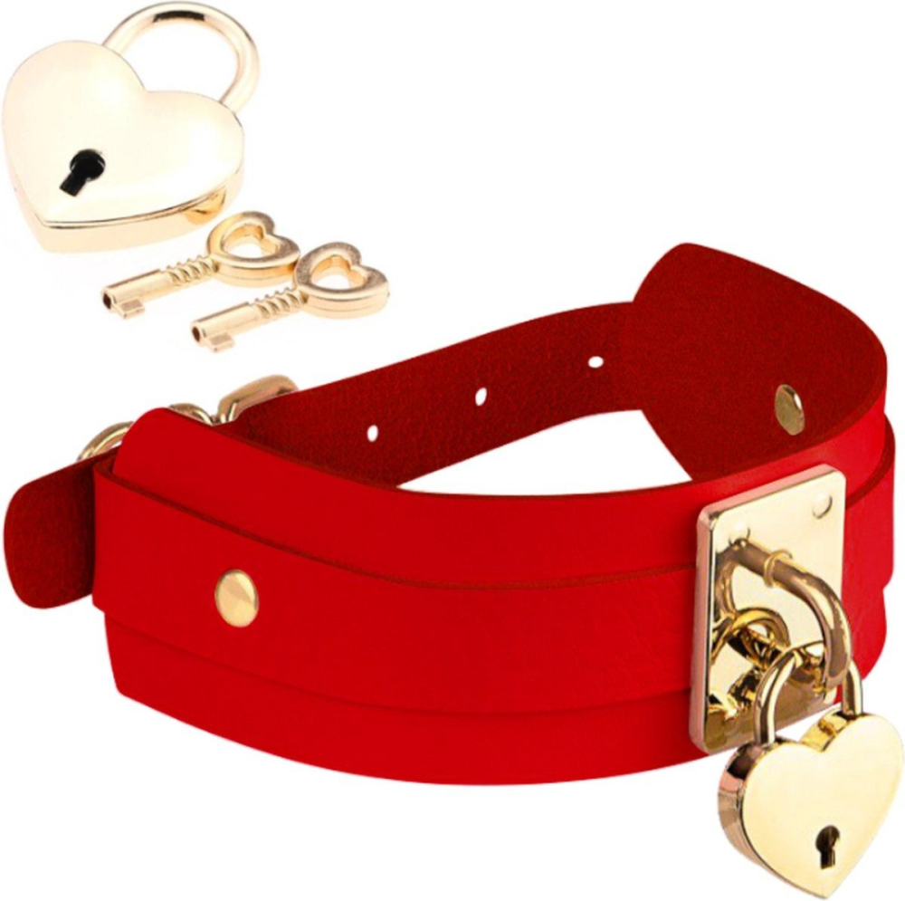 Нашийник широкий червоний Kinky Diva Collar Me із золотистим замочком у вигляді серця та ключиком