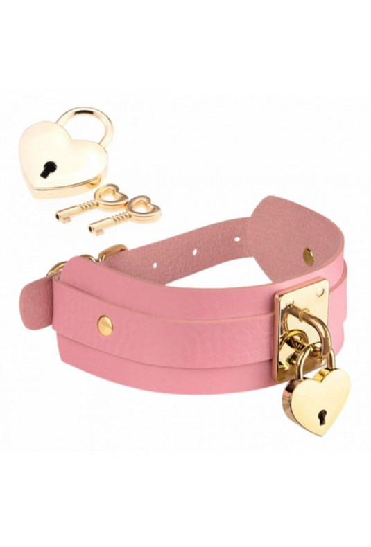 Нашийник широкий рожевий Kinky Diva Collar Me! із золотистим замочком у вигляді серця та ключиком