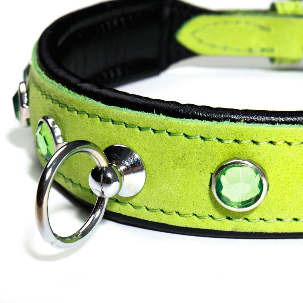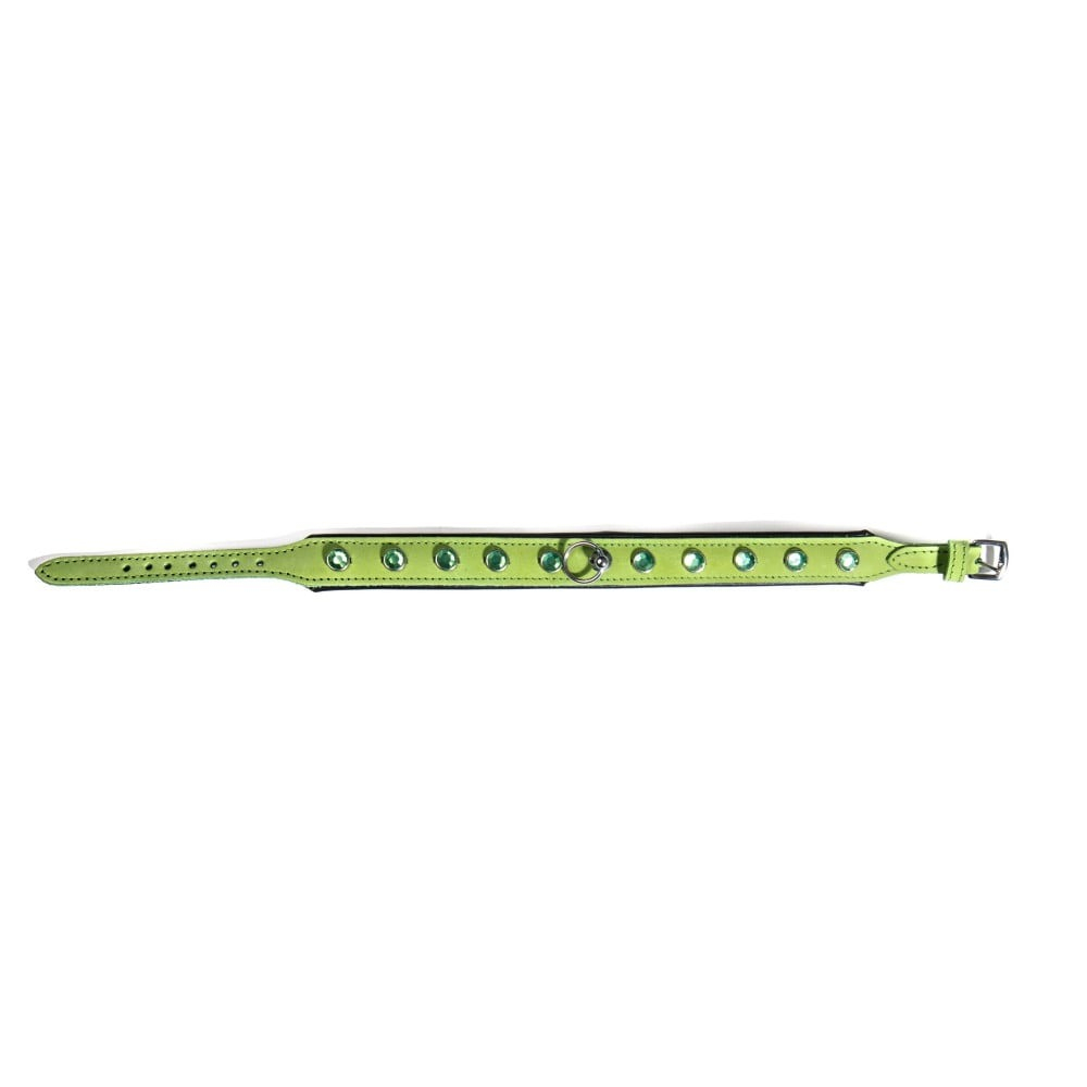 Нашийник зі стразами тонкий DS Fetish шкіряний, салатовий (Голландія)