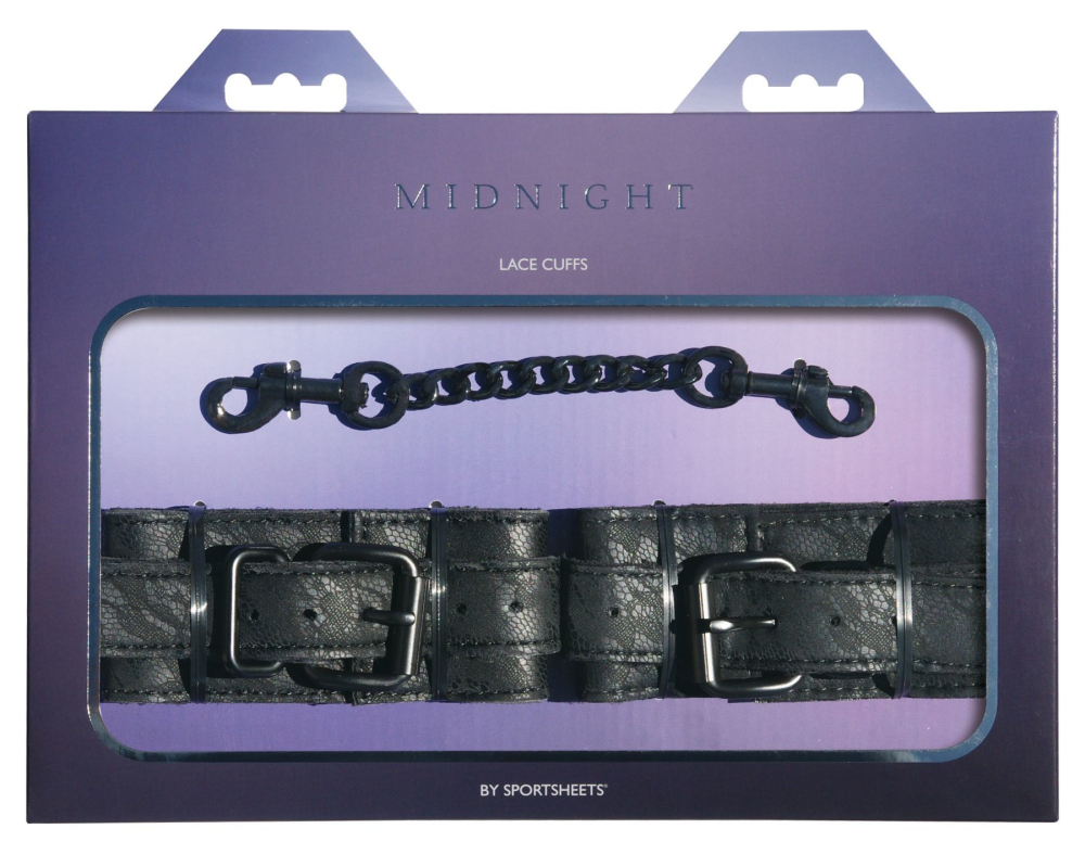 Наручник зроблені з м'який і приємною на дотик тканина з тонкимі мереживо. Їх легко щільно зафіксувати навколо зап'ястя, не викликаючи дискомфорт. Соєкатеринбурзькі наручники Sportsheets Midnight Lace Cuffs мають чорні металеві пряжки, а також надійний металевий ланцюг з двома застібка.
