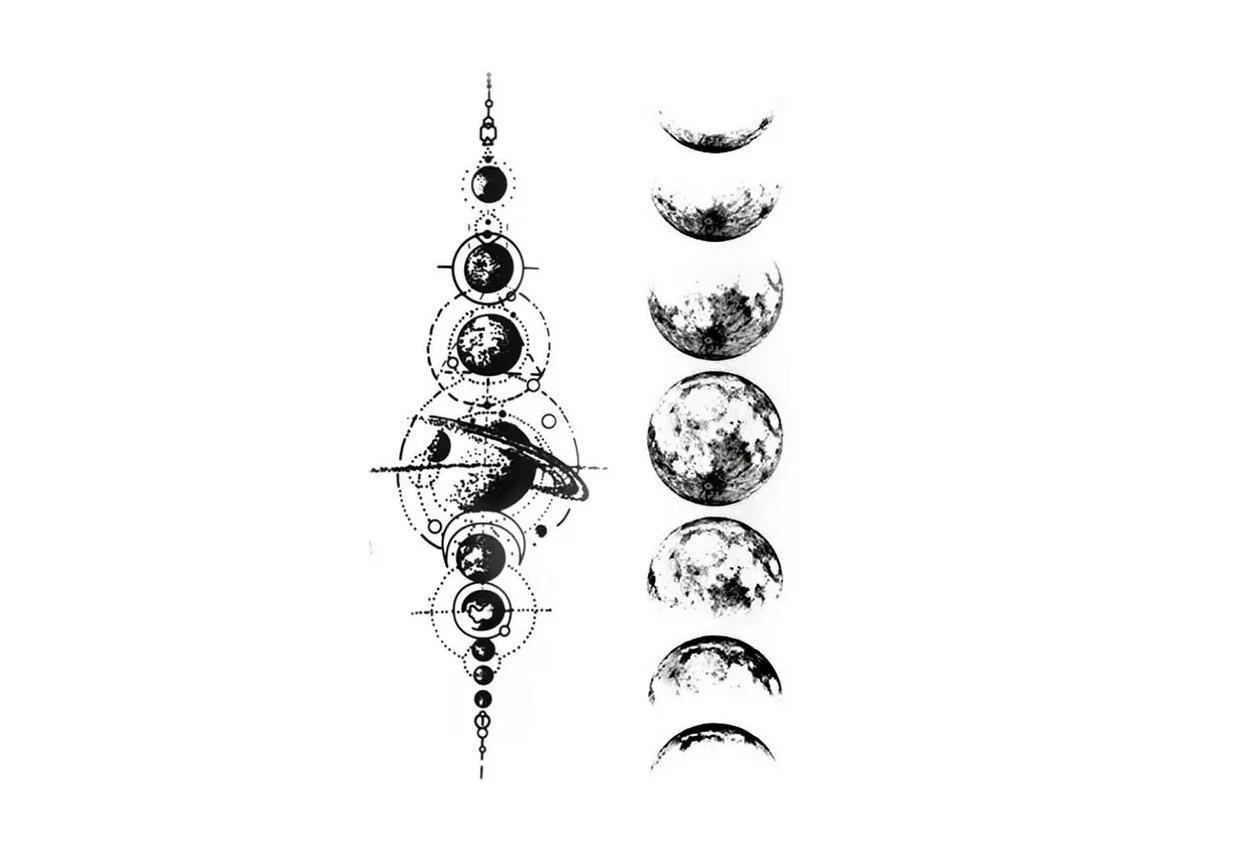 Тимчасове перекладне тату Місяць та планети Tattoshka 60x105 мм