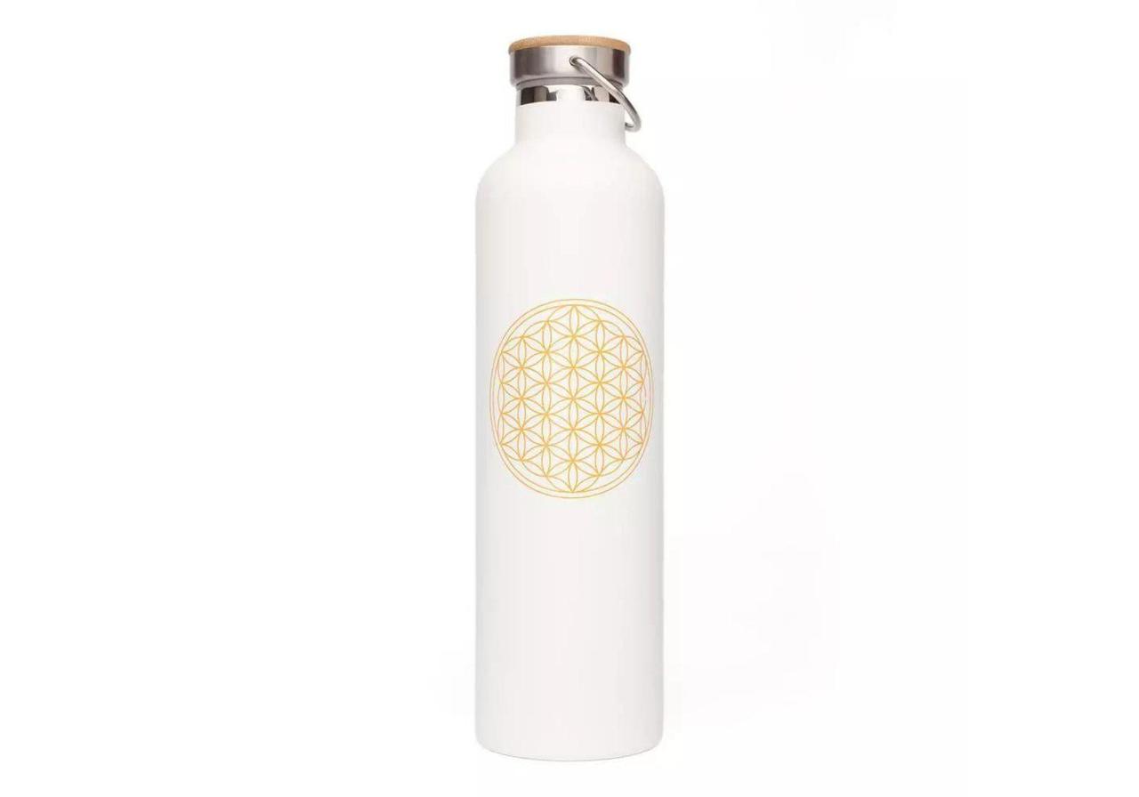 Термопляшка з нержавіючої сталі Bodhi Квітка Життя 1000 мл біла