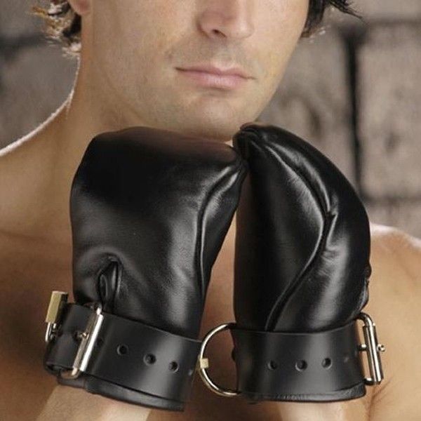 Тримайте свої руки в чорних рукавичках-наручниках. Ви будете почувати себе безпорадним без можливості взяти будь-які предмети. Виготовлені рукавички з високоякісної м'якої шкіри. Прикріплені металеві кільця для приєднання ланцюга або повідця. Довжина наручників приблизно 19,7 см.Діаметр регулюється в межах 5,3-9,6 см. У комплект входять 2 латунних замку.