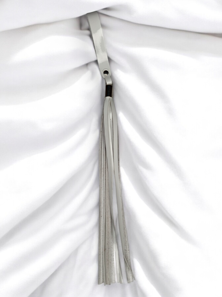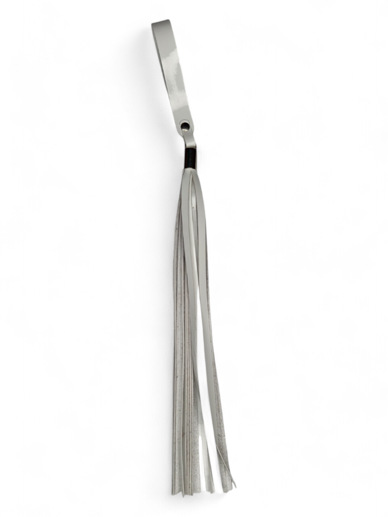 Така розкішна батіг неодмінно має приєднатися до вашої колекції БДСМ-атрибутики! Він допоможе вам поставити партнера на місце, вказавши його помилки! Флогер виготовлений із штучної шкіри високої якості. Він має безліч хвостиків, які будуть завдавати дуже чуттєвих ударів по ніжному тілу. Ручка флоггера з петлею зручно лягає у долоню та прикрашена металевим наконечником. Чому б вам не пристебнути наручниками партнера, щоб відрізати шляхи втечі від справедливості?