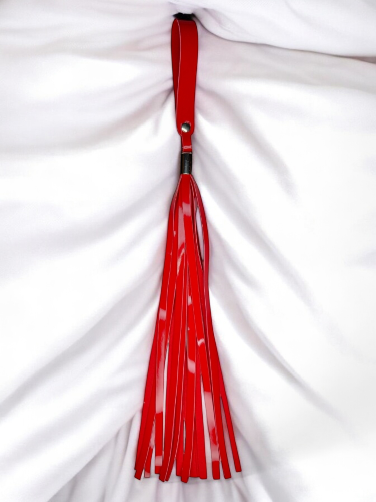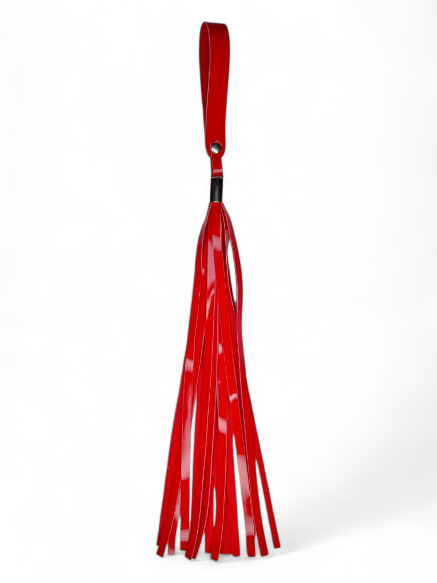 Така розкішна батіг неодмінно має приєднатися до вашої колекції БДСМ-атрибутики! Він допоможе вам поставити партнера на місце, вказавши його помилки! Флогер виготовлений із штучної шкіри високої якості. Він має безліч хвостиків, які будуть завдавати дуже чуттєвих ударів по ніжному тілу. Ручка флоггера з петлею зручно лягає у долоню та прикрашена металевим наконечником. Чому б вам не пристебнути наручниками партнера, щоб відрізати шляхи втечі від справедливості?