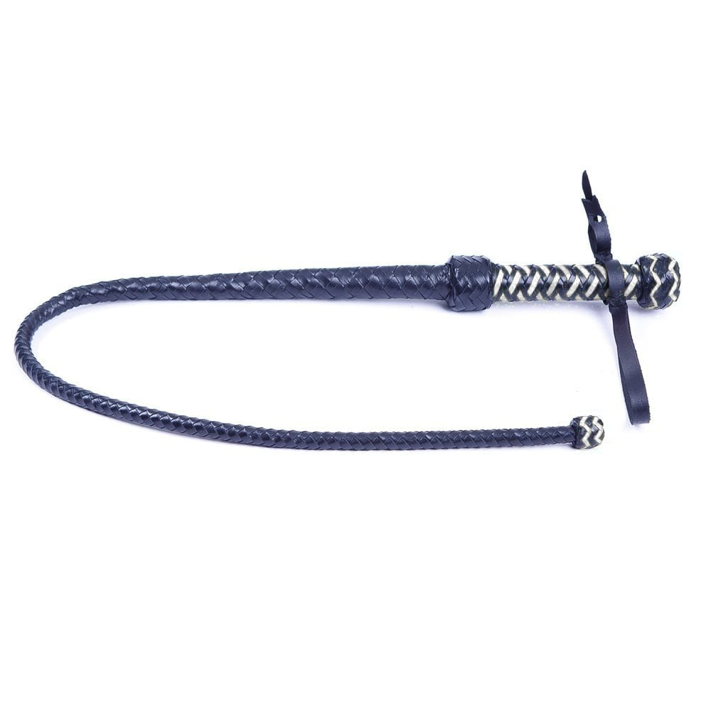 Батіг-нагайка з твердим наконечником шкіряний DS Fetish синьо-білий (Голландія)