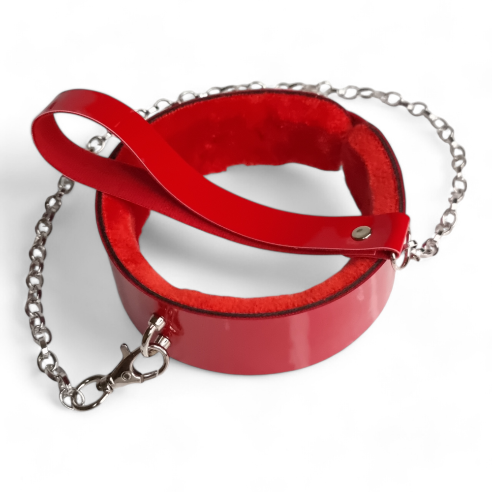 з повідцем з червоним хутром з ЕКО лаку Flirty