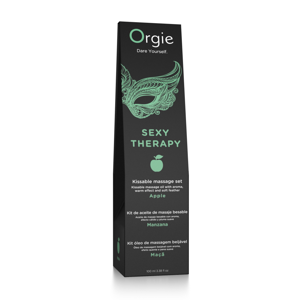 Подарунковий набір їстівне масажне масло зі смаком яблука + перо Orgie