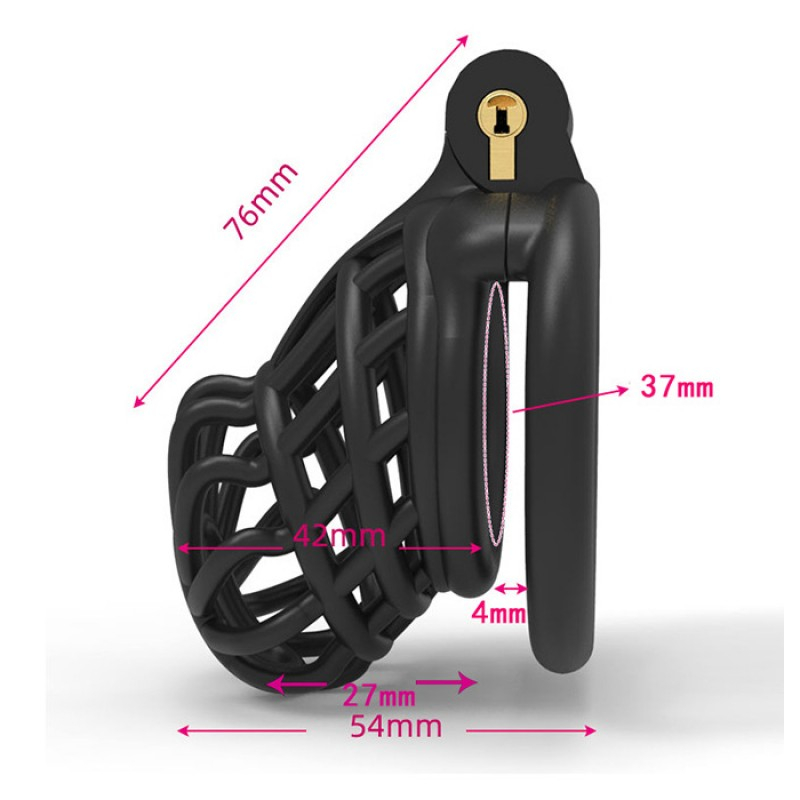 Матеріал, що приємний для шкіри. Основний корпус виготовлений із синтетичного матеріалу нейлонової смоли, який приємний для шкіри та не дратує. Мідний сердечник замку у поєднанні з ключами з нержавіючої сталі міцний, довговічний та стійкий до іржі. Вишуканий дизайн у вигляді стільників та голови дракона-меча, що підходить до вашої шкіри. Пористий і дихаючий, не закладений, з великим отвором для сечовипускання, що полегшує сечовипускання. Можна носити у звичайних розмірах. Зручно носити - ланка у вигляді кільця надійніша і не відривається. Загальна вага становить 110-130 г, вона легка і портативна, невидима для носіння і може пройти перевірку безпеки. Простота у використанні, чищення водою або миючим засобом, а також її можна носити під час купання та сну. Коли він не використовується, покладіть його в сумку для зберігання, щоб запобігти потраплянню пилу. Будьте обережні, не розміщуйте його в місцях, доступних для дітей. Пояс вірності для чоловіків значно відрізняється від жіночого. Хоча й є такі ж види білизни як і у жінок. Зазвичай пояс вірності для чоловіків є клітиною для пеніса. Виготовляється із пластмаси або нержавіючої медичної сталі. Пояс вірності чоловікам може використовуватися як надійний фіксатор чоловічого пеніса для психологічного заспокоєння жінок. Адже для жінок головне, щоб мужик не ходив набік. Також може бути використано як атрибут для сексуальних ігор. Експериментувати можна по-різному, головне включити уяву. Надійно закріпивши пояс вірності можна зафіксувати за допомогою замочка, а ключик сховати в надійному місці, і змусити чоловіка заслужити його. Не вимагає особливого догляду за конструкцією, достатньо промити під проточною водою з милом. У зв'язку з тим, що не відноситься не до одного з американських і європейських брендів, не має барвистої дорогої упаковки і витрат на маркетинг, це координально скорочує витрати на виробництво і логістику даної продукції по всьому світу, що дає в результаті відносно невисоку вартість для кінцевого споживача, при найвищій якості продукції.