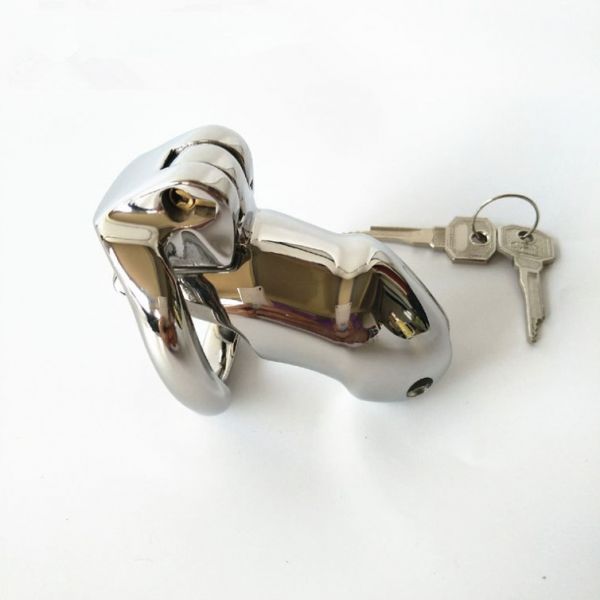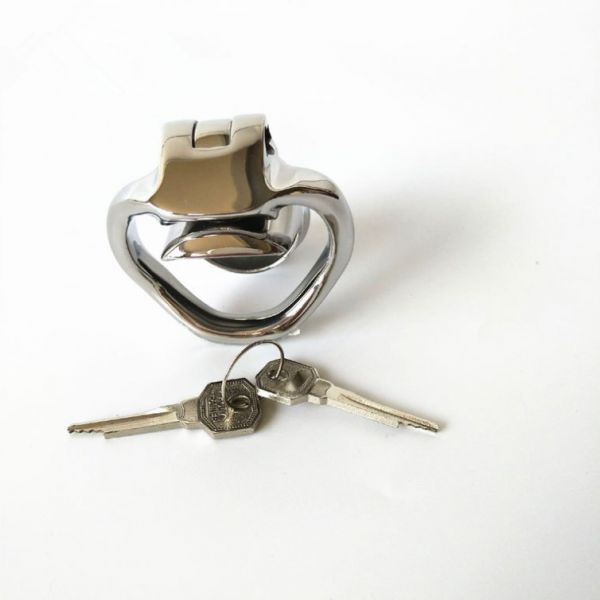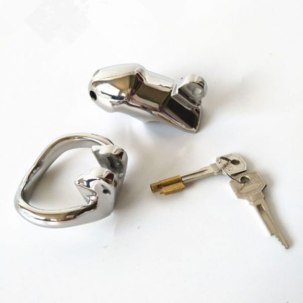 Ергономічна форма для зручного носінняпоставляється з замком і двома ключамидержить ваш пеніс покірно спрямованим вниз використання: Покладіть свій член під замок і дозвольте своєму держателю ключів вирішити, як довго триватиме ваше ув'язнення. Трубка утримує ваш пеніс покірно, направляючи вниз, не даючи йому піднятися. Кільця спеціально розроблені, щоб відповідати природним вигинам вашого тіла для безпечної, але зручної посадки.На голівці, ви можете знайти центральний отвір, призначений для сечовипускання.Додаткова інформація: Внутрішній діаметр клітини 3,3 см( маленька версія), кільця: 4,5 см, дві клавіші і замокматеріал Нержавіюча Сталь