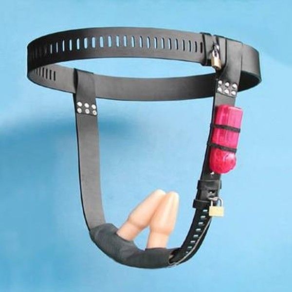 Хочете тримати жінку під контролем? Чорне жіноче пристрій цнотливості з високоякісного матеріалу з анальним вібратором і вагінальним приладом саме те, що вам потрібно. Цікавий дизайн. Для міцності і безпеки в набір входить 2 замки з ключами. Регульований пояс.