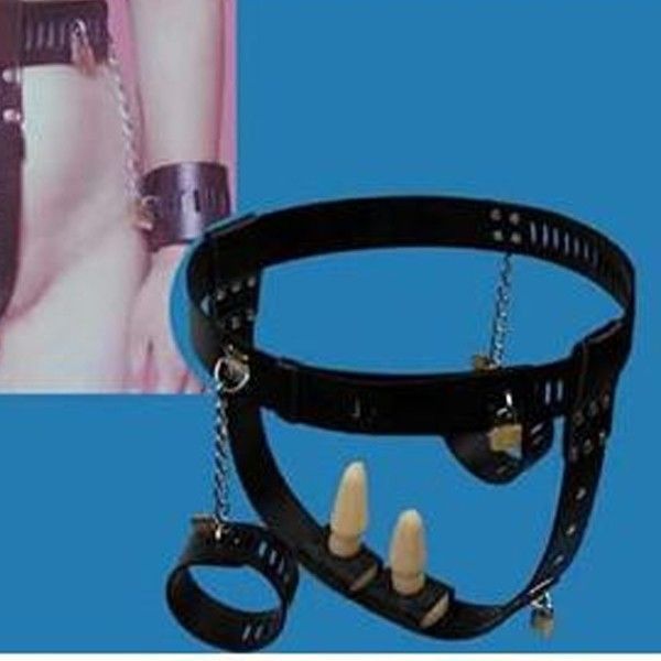 Чорний жіночий пояс вірності. Хочете тримати жінку під контролем і в постійному хвилюванні? Чорне жіноче пристрій цнотливості з високоякісного матеріалу з рожевим анальним і вагінальним приладами саме те, що вам потрібно. Цікавий дизайн. Для міцності і безпеки в набір входить 2 замки з ключами. Регульований пояс. А також приєднані наручники.