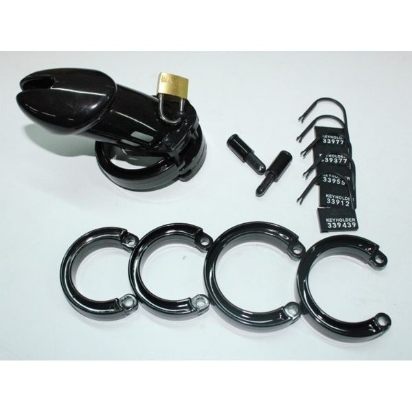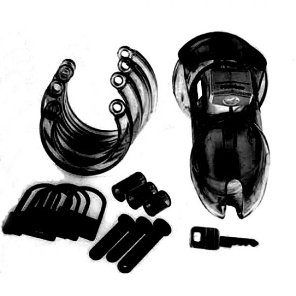 Чорний Чоловічий пояс вірності виготовлений з якісного пластику. Ідеальний і гладкі форми для безпеки. У комплект входить латунний замок з ключами.