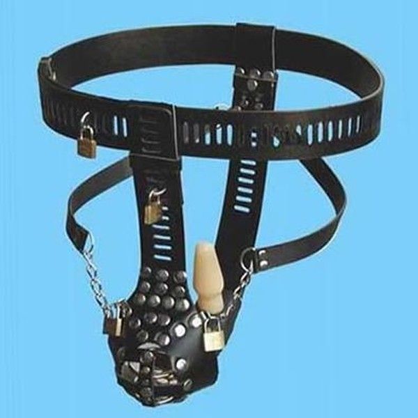 Чорне чоловіче пристрій цнотливості з високоякісного матеріалу з анальної пробкою. Цікавий дизайн. Прикрашений металевими ланцюгами.