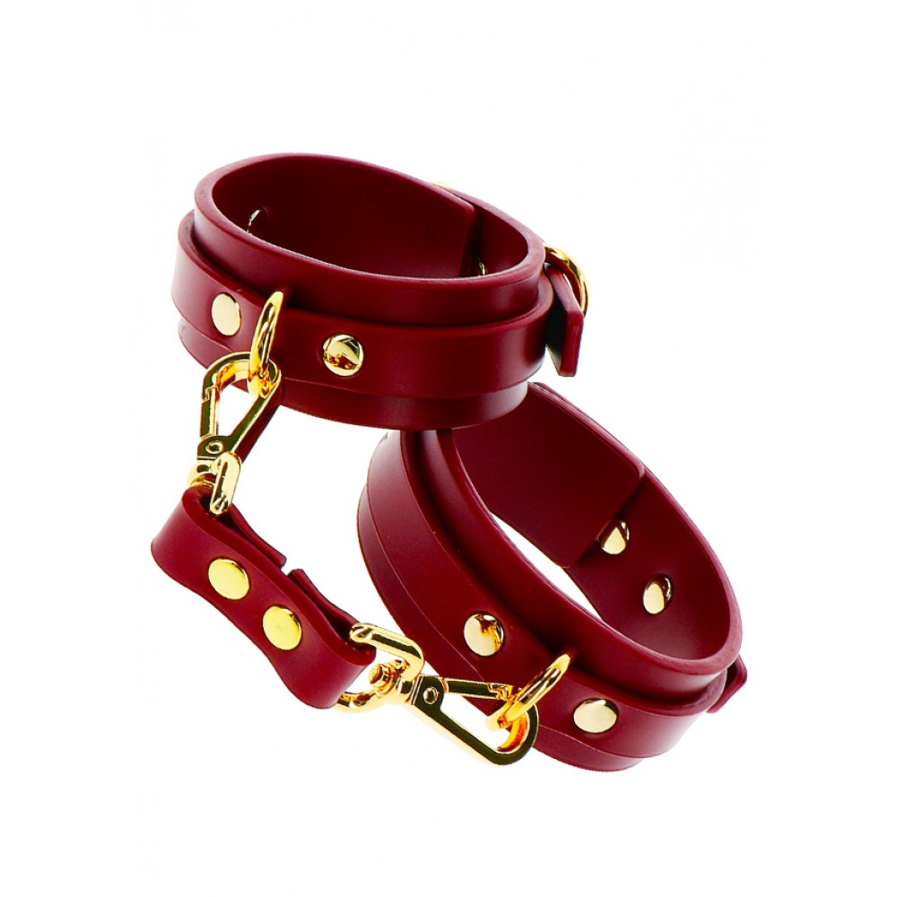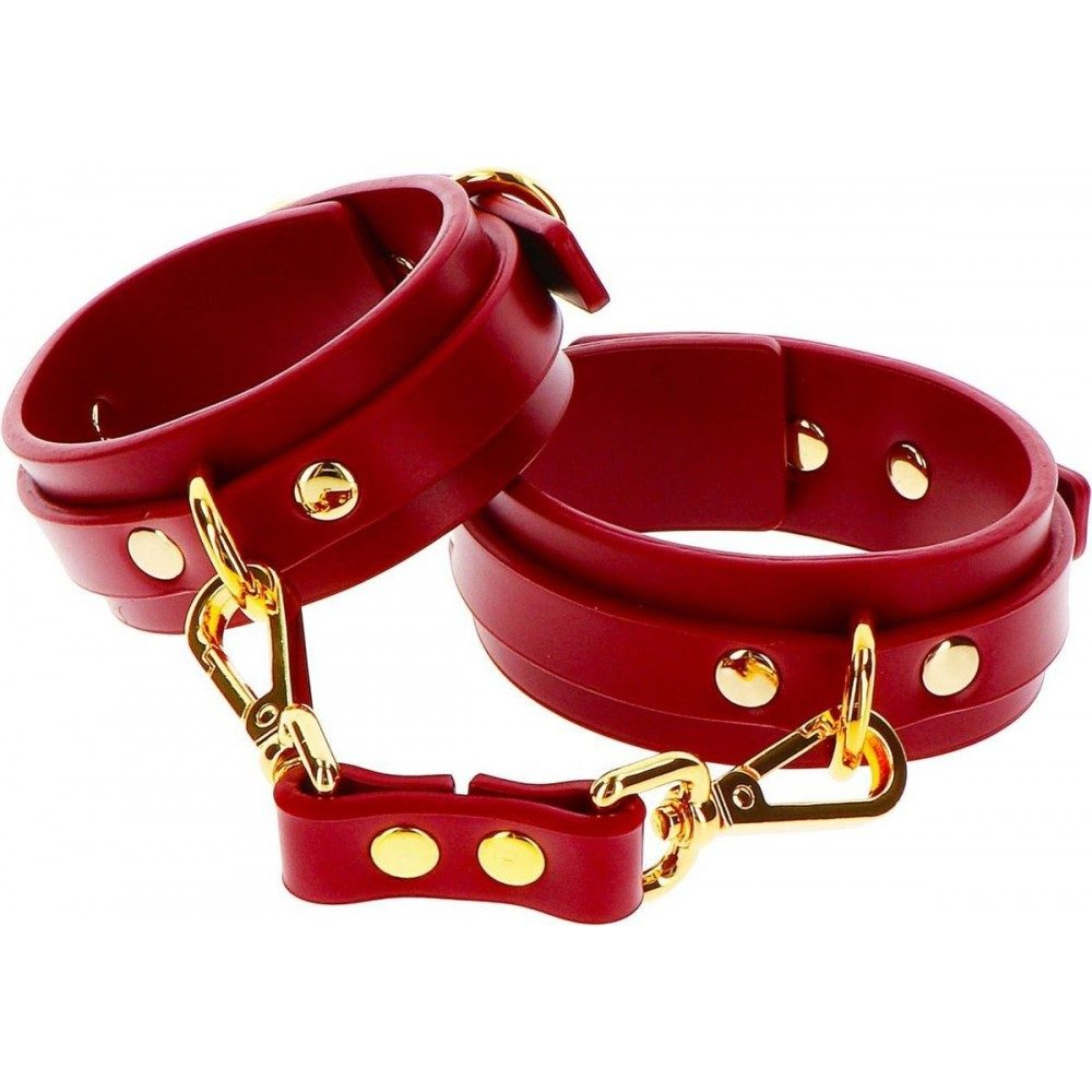 Характеристики Окови БДСМ з карабінами червоного кольору із золотистою фурнітурою Taboom
