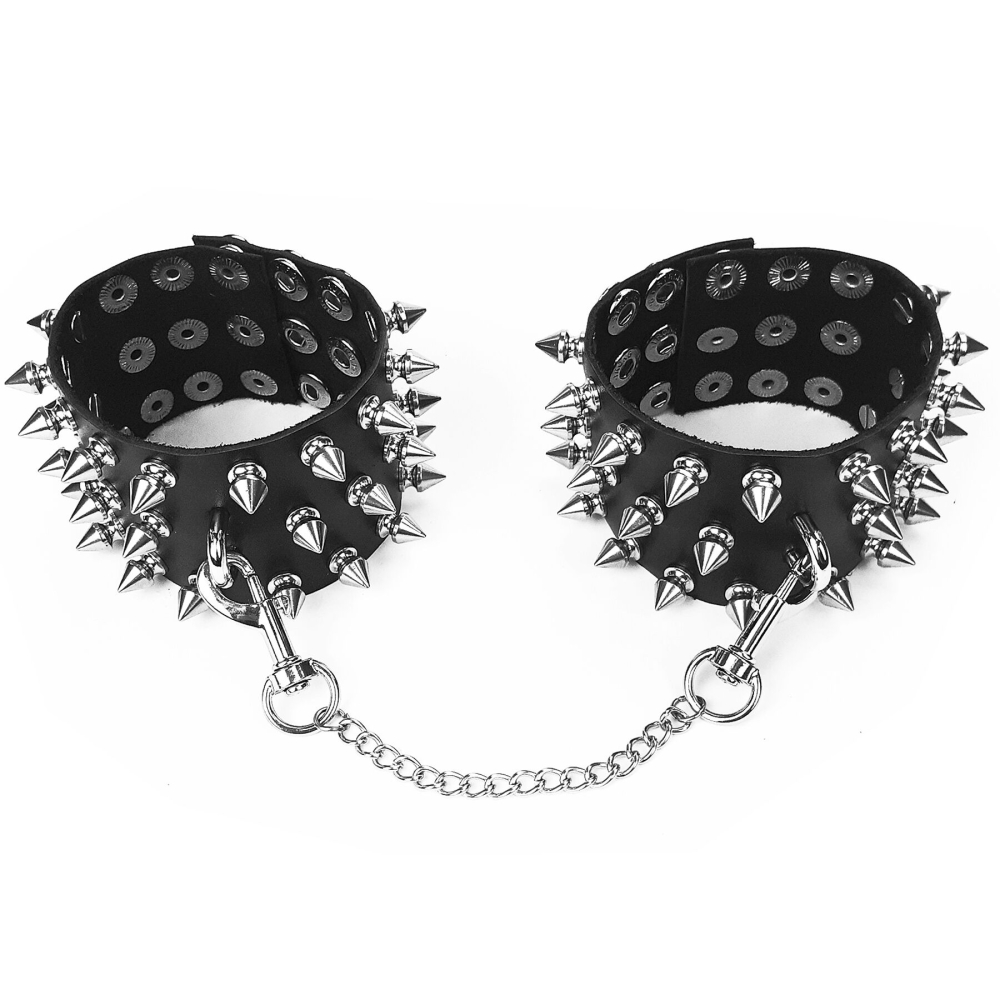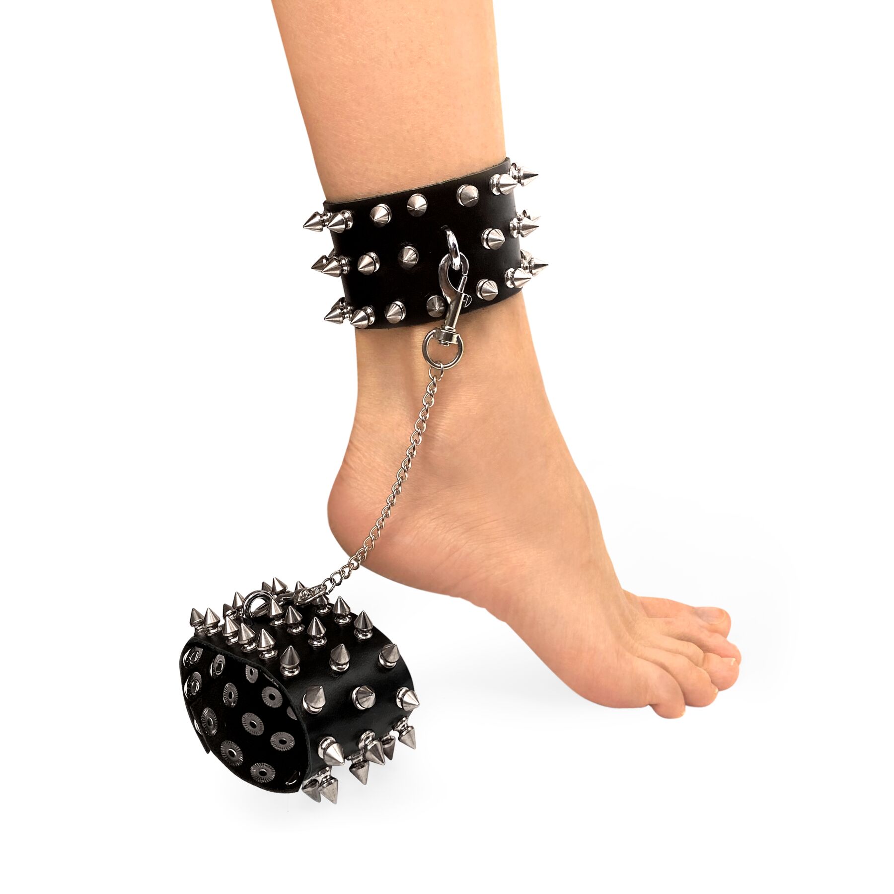 Окови з шипами БДСМ із натуральної шкіри чорного кольору Art of Sex Rose