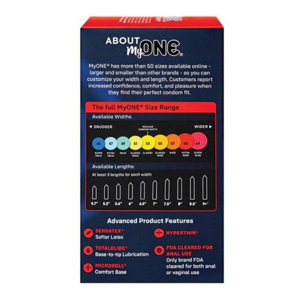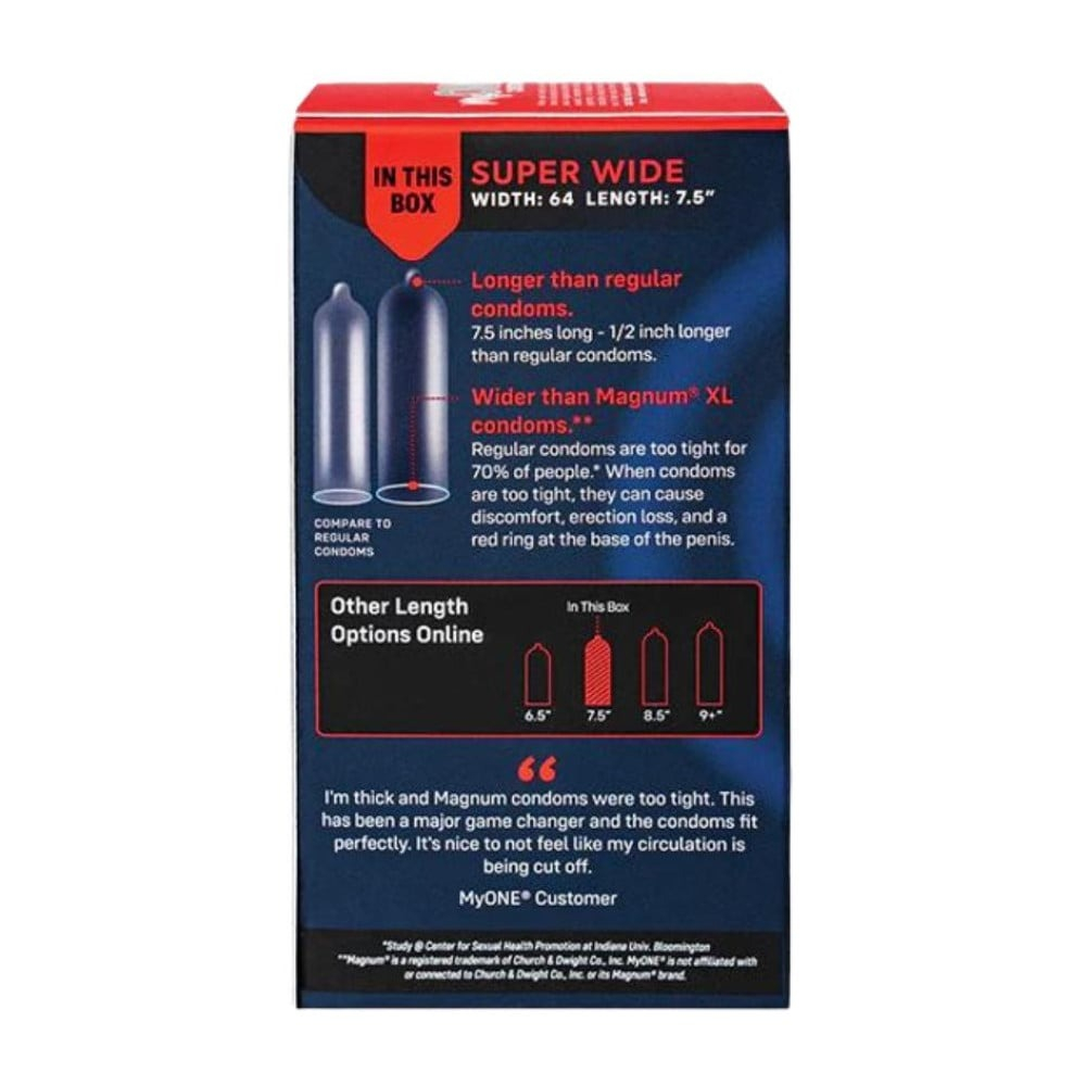 Ключові особливості презервативів My One SUPER Wide & Long: Чи знаєте ви, що звичайні презервативи занадто тісні для 70% людей? Виправте посадку за допомогою My One!