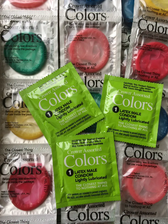 Crown Assorted Colors – кольорові ультратонкі презервативи класичної форми. П'ять різних кольорів на вибір - червоний, жовтий, зелений, синій та рожевий. Зроблені з тонкого та міцного латексу "Ширлон". Латекс Ширлон (Sheerlon latex) - латекс, розроблений японським концерном Okamoto, відрізняється на 30% зменшеною товщиною за тієї ж міцності, тобто. всі презервативи з цього латексу чутливі, як ультратонкі презервативи іншим маркам, при цьому мають міцність звичайних презервативів.
