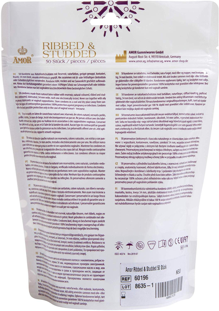 Характеристики Презервативи з ребристо пухирчастою поверхнею Amor Ribbed & Studded 50 штук