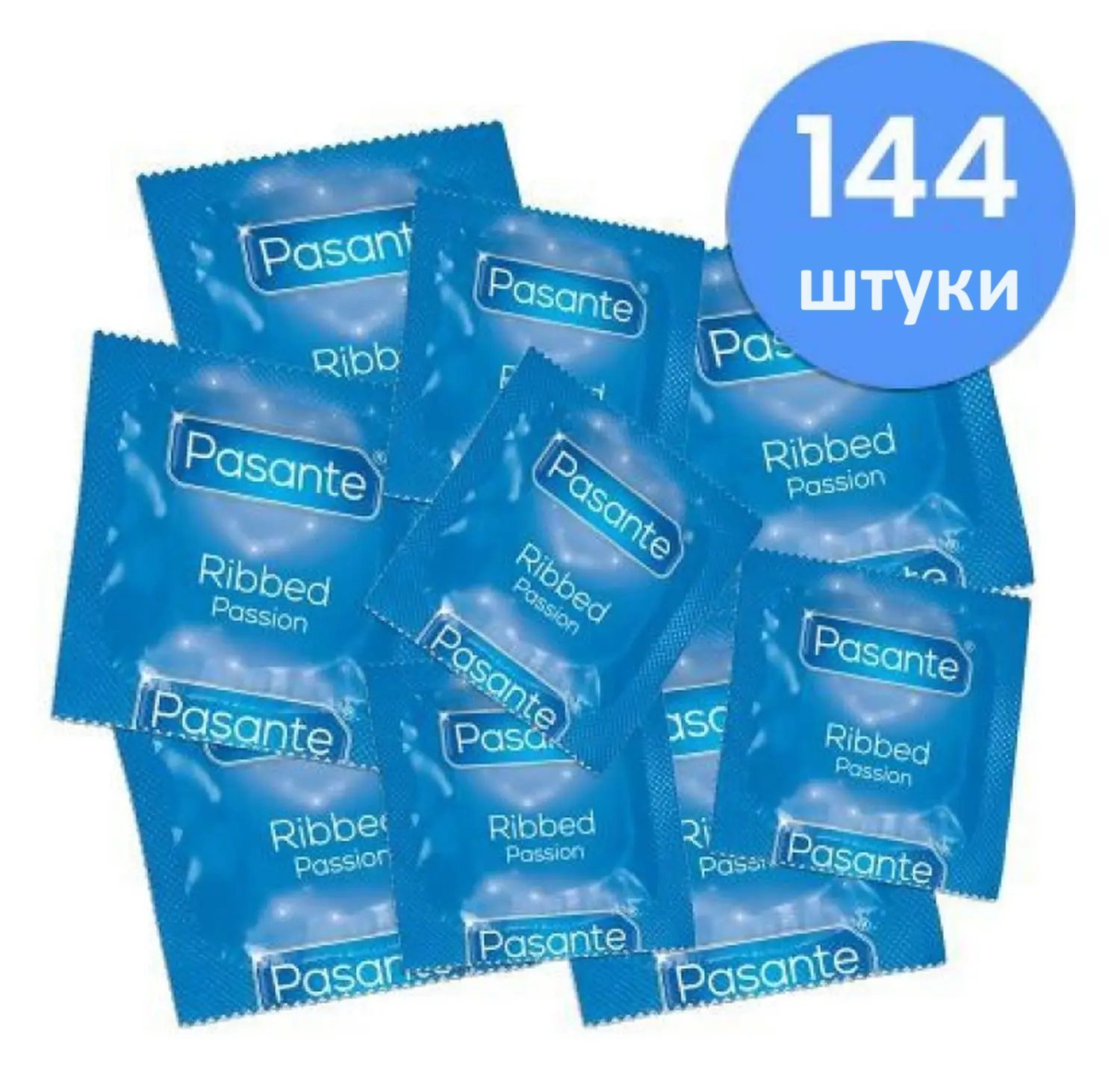 Презервативи з ребристою структурою із натурального латексу Pasante Ribbed Passion 144 штуки